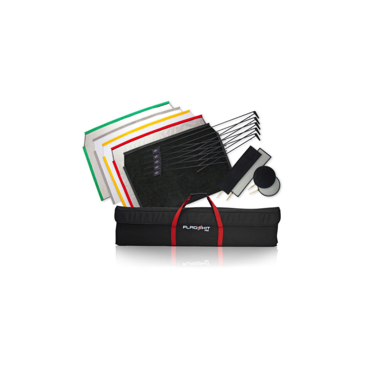 This portable Flag Kit contains 5 larger 24" x 36" frames, 5 fabrics, 2 dots & 2 fingers.