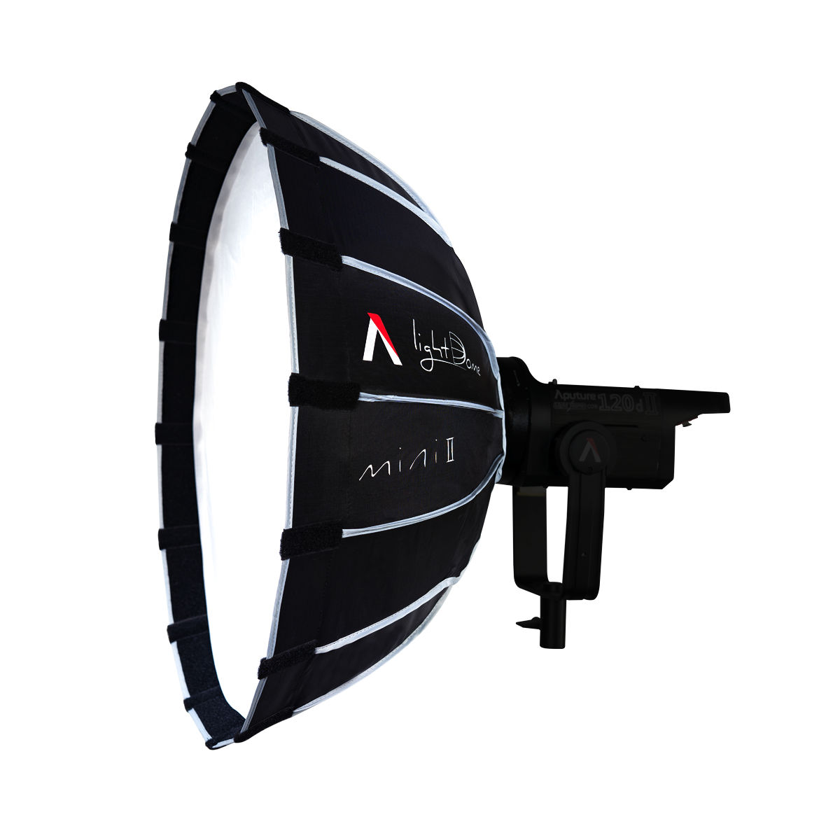 Based on a beauty dish, the Aputure Light Dome Mini II has a shallower design than the larger Light Dome, making it the ideal choice for creatives needing soft light in a more confined space.