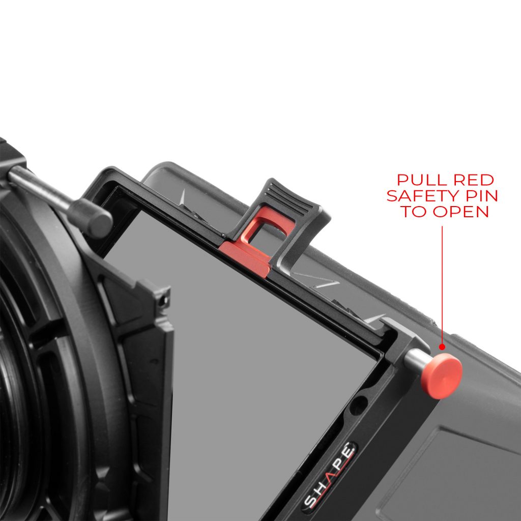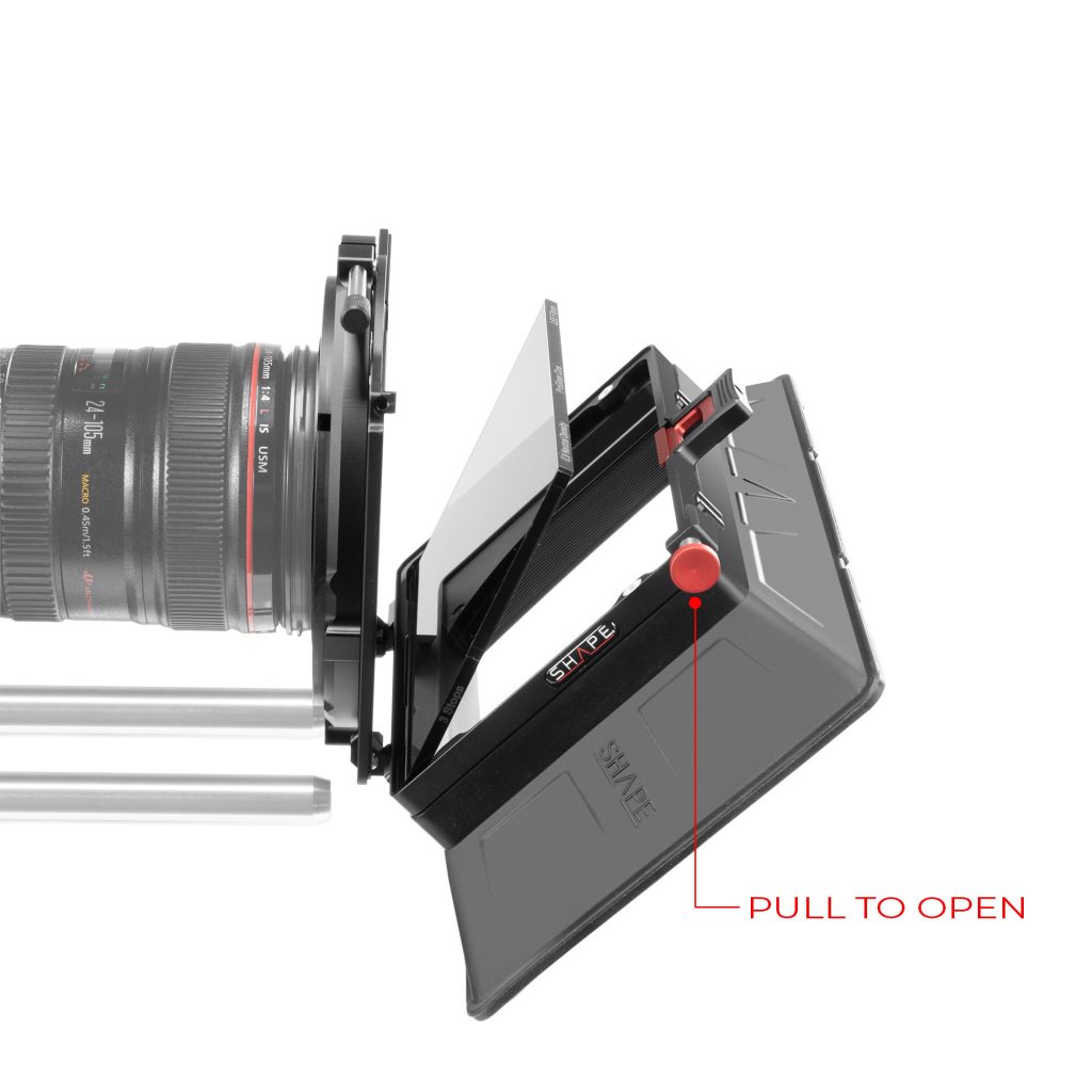 The SHAPE Lightweight Single Filter Tray 4×5.6 Matte Box is a silicone matte box mounted on a CNC aluminum main frame with an outer diameter of up to 124 mm. It provides a wide field of view for a large variety of wide angle lenses.