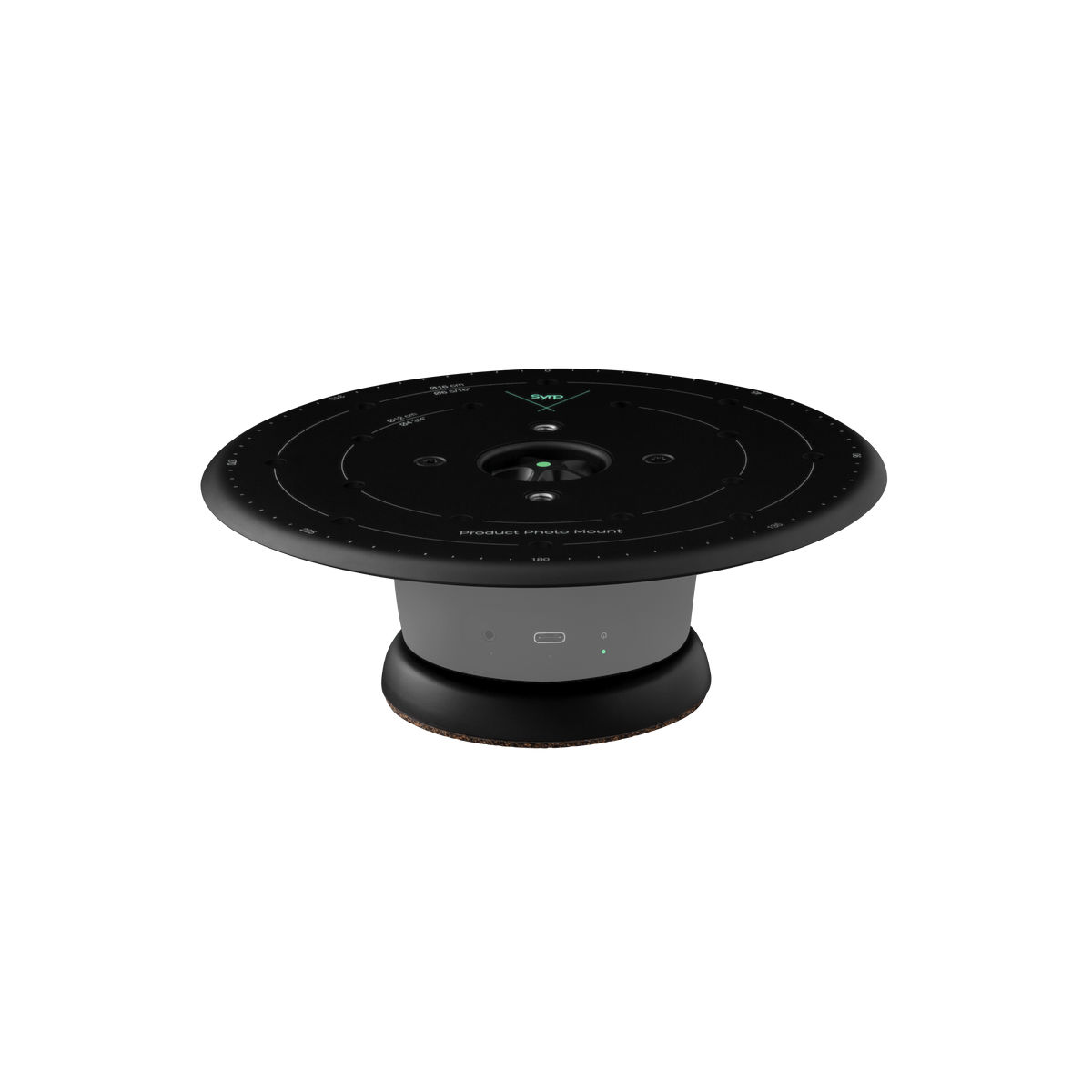 Meant to be used with the Genie Mini II Time-Lapse Rotator, the 8" Aluminum Turntable Platform from Syrp has a cheese-plate design with several 1/4"-20 taps in its surface for securing products weighing up to 8.8 lb. Thanks to the taps, you can use the Genie/Turntable combination upside down or mounted to the wall. Mounted to the Genie Mini, the turntable will make a 360-degree rotation in 33 seconds. The Turntable Platform comes with a white and a black cardboard background disk. A downloadable template is available on Syrp's website for do-it-yourself mounting setups.